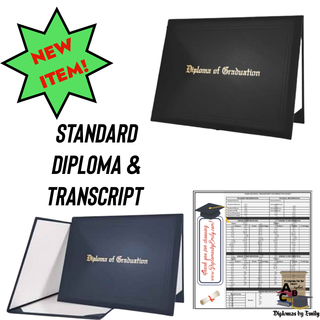 For the Standard Diploma & Trandscript , see color options below for the diploma cover